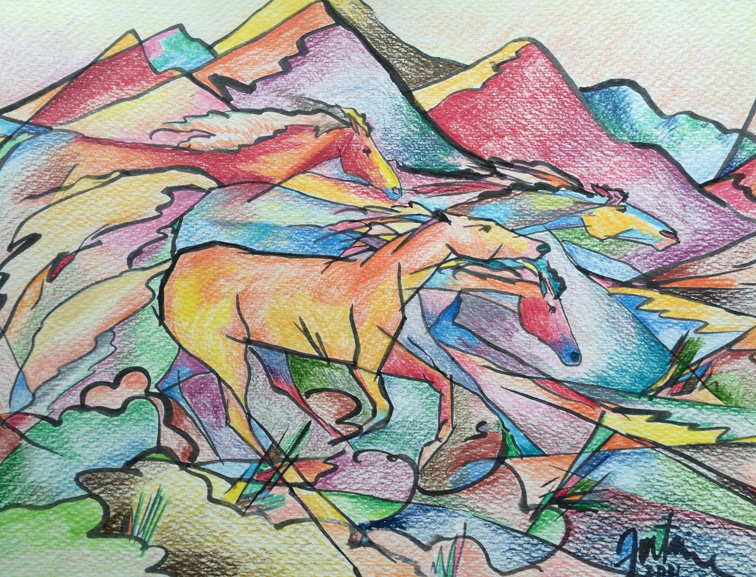 I can't remember when I fell in love with the horse... It seems like it has been a life long romance. I am especially attracted to the freedom of movement and the interplay of lines and shapes that comes from capturing these beautiful animals on paper.